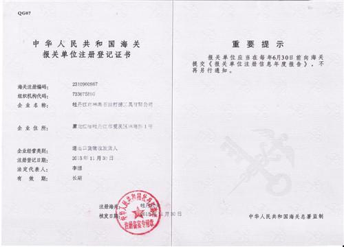 海關(guān)報關(guān)單位注冊登記證書